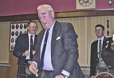 Mail shot will soon be posted to all family members, ie one per address. We have tried to update our address database. If any member does not get the mailshot, please inform our Secretary, or myself and we will endeavour to correct the database. The package will include a letter, invitation to the Gathering, 200 Club application form, and Gift Aid application form. The invitation form contains boxes to be ticked re the questions in the letter. Please send the reply back to Elizabeth, our Treasurer, as soon as possible. Burns Supper. A successful tribute to the Bard was held on Saturday 22nd January 2005, in the St Vincent Bowling Club. The Haggis was brought to the top table and ably dealt with by Gordon Caskie, Carried by Steve Rice, and piped by Pipe Major Andrew McCowan.