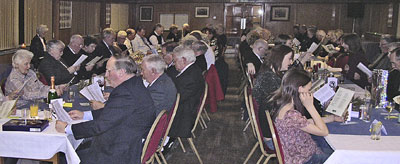 The reply to the Toast to the Lassies, was given by Holy Willie, alias Cathy Ward. She responded to the points raised by Angus, and put in a few digs of her own. I judged the contest to have been a good draw. The raffle was drawn, Gordon Gillies gave the vote of thanks, then the company participated in some community singing of the songs of Burns. The evening closed with a few remarks, then the singing of Auld Lang Syne. Alasdair. |